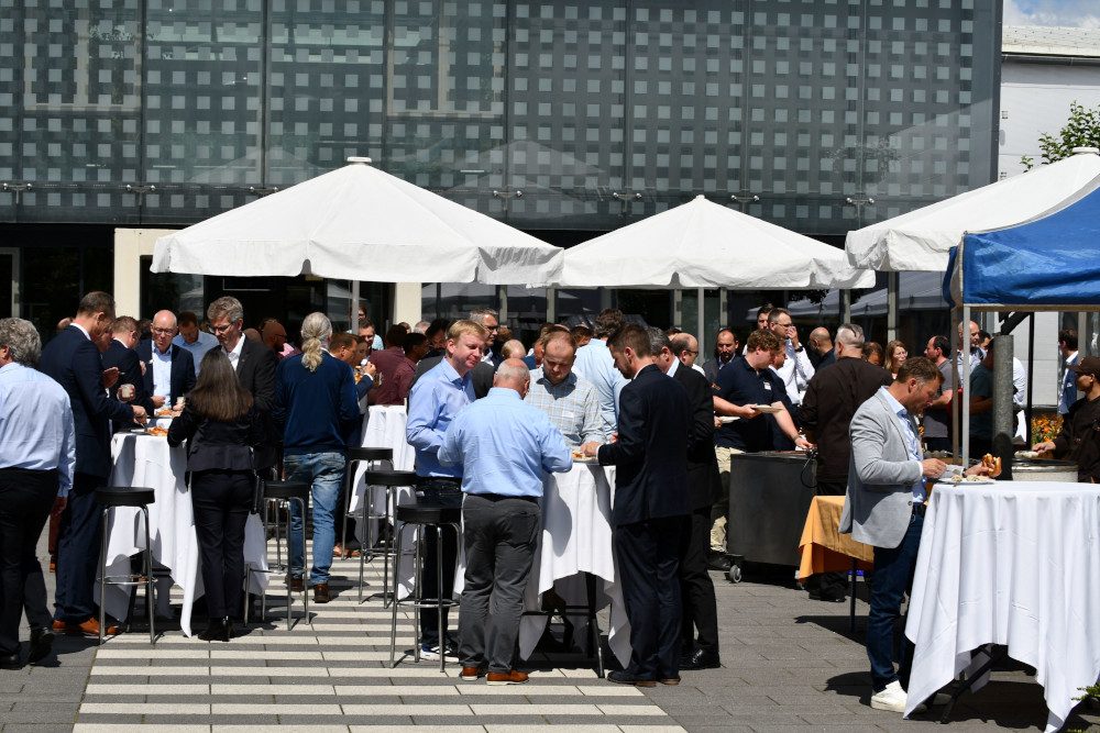 Weißwurstfrühstück und Gelegenheit zum Networking – das Wetter spielte mit beim Luftfahrttag 2025, Bild: Hufschmied Zerspanungssysteme