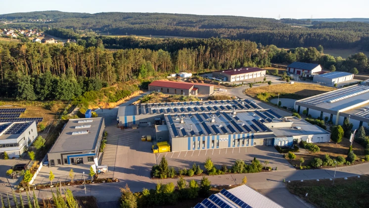 Der Firmensitz in mittelfränkischen Spalt (oben), CG TEC Azubis 2025 (links)