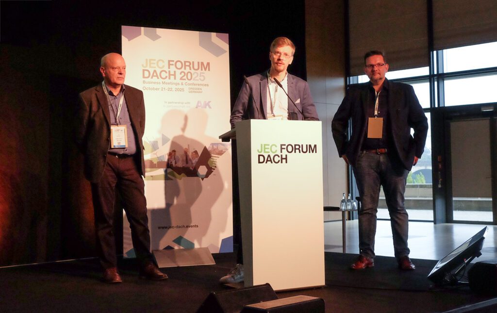 Am 21. und 22. Oktober 2025 fand das JEC Forum DACH in Dresden statt, einer Stadt, die für ihre industrielle Stärke und fortschrittliche Technologie bekannt ist. Hier treffen Innovationen im Bereich Verbundwerkstoffe auf Exzellenz in Forschung und Entwicklung. Die Konferenz, organisiert von der JEC Group in Zusammenarbeit mit der AVK, gilt als zentrale Plattform für den Austausch über Verbundwerkstoffe im deutschsprachigen Raum. Das Event bot den perfekten Rahmen für das Fachnetzwerk CU Bau des Composites United e. V. (CU) innovative Ansätze für die Zukunft der Infrastruktur zu präsentieren und den Dialog zwischen Forschung, Industrie und Politik zu fördern.