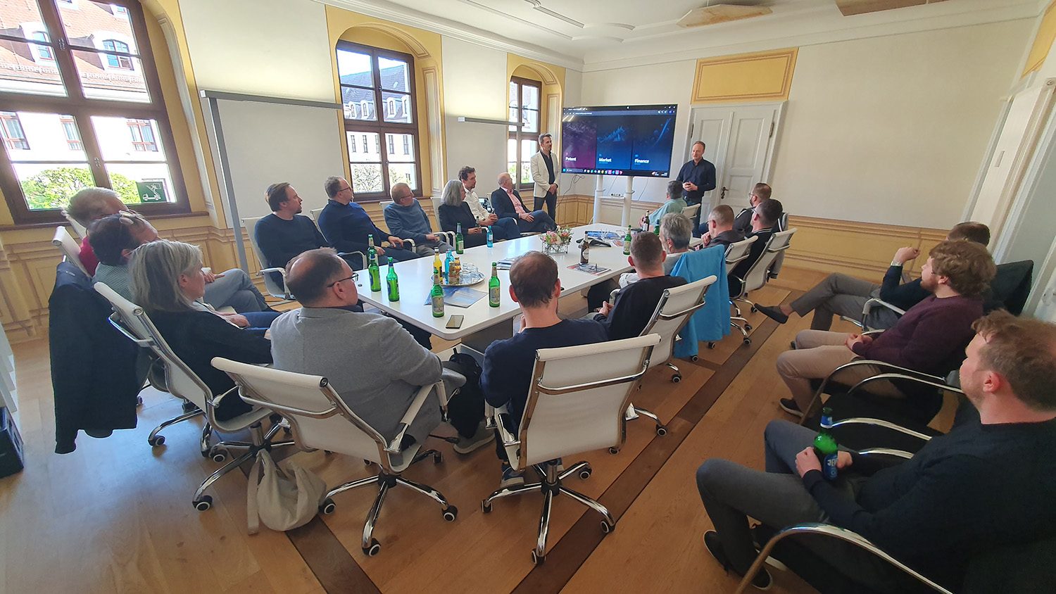Am 29. April 2026 fand der CU Ost Unternehmer-Stammtisch bei unserem Mitglied white IP group in Dresden statt. Unter dem Motto „Wissenschaft trifft Wirtschaft bei white IP“ kamen über 20 Vertreterinnen und Vertreter aus dem regionalen Netzwerk zusammen, um sich am „Stammtisch“ über aktuelle Themen rund um Faserverbund, Leichtbau und strategische Technologieverwertung auszutauschen.