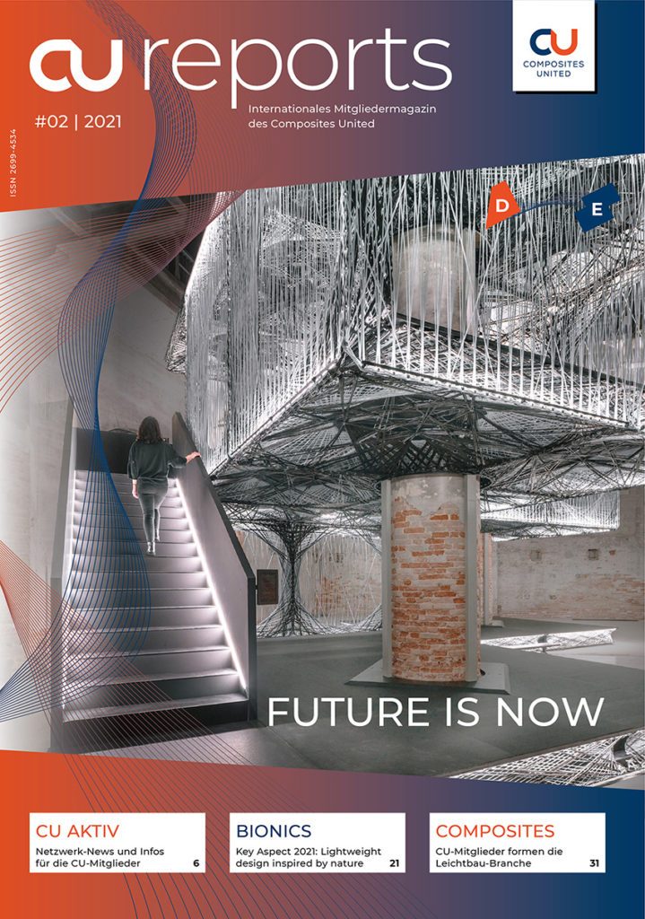 CU reports – das ist unser Mitgliedermagazin: Voll mit aktuellen Themen und Trends, ein wahres Schaufenster der modernen Faserverbund- und Leichtbau-Branche. Kein Wunder, denn die Fachbeiträge stammen durchweg von CU-Mitgliedern. Das macht den CU reports zu einer wertvollen Informationsquelle für Leserinnen und Leser aus Politik, Wissenschaft und Wirtschaft, darunter insbesondere die Anwender und Entscheider der rund 350 Mitglieder des Composites United. Der CU reports erscheint zweimal jährlich in Deutsch und Englisch, gedruckt und online.