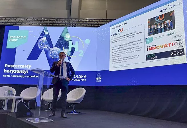 Im Rahmen dieser grenzübergreifenden Zusammenarbeit organisierte das PKTK nun gemeinsam mit dem CU am 28. und 29. September 2022 erstmalig auf der Kompozyt Expo in Krakau einen Messestand mit 19 Unterausstellern aus Wissenschaft und Industrie. Die Aussteller zeigten sich begeistert von der Veranstaltung, dem intensiven Austausch sowie von den Expertenworkshops und dem begleitenden Vortragsprogramm, welches unter dem Motto „Hydrogen – Composite – Future“ stattfand. Referenten und Referentinnen aus Wissenschaft und Industrie sprachen über die Entwicklung und Förderung von Wasserstofftechnologien und Ansätze für die Zusammenarbeit in diesem Bereich. Aber auch weitere aktuelle Themen wie der Einsatz von Faserverbundwerkstoffen im Bauwesen, bei Sport- und Freizeitanwendungen sowie Nachhaltigkeit und Recyclinglösungen standen im Fokus der Veranstaltung.
