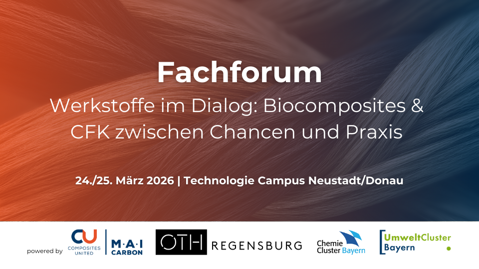 In der Veranstaltung erhalten Sie einen Überblick über die Ausgangsstoffe, aktuelle Forschungsergebnisse und Entwicklungen sowie praktische Beispiele aus der Industrie. Wir zeigen, wie Biocomposites vom Laboransatz bis zur industriellen Umsetzung entwickelt werden und welche Chancen aber auch Herausforderungen sie für nachhaltige technische Lösungen und eine nachhaltige Zukunft bieten – also eine sinnvolle Ergänzung um High-Performance Material CFK.