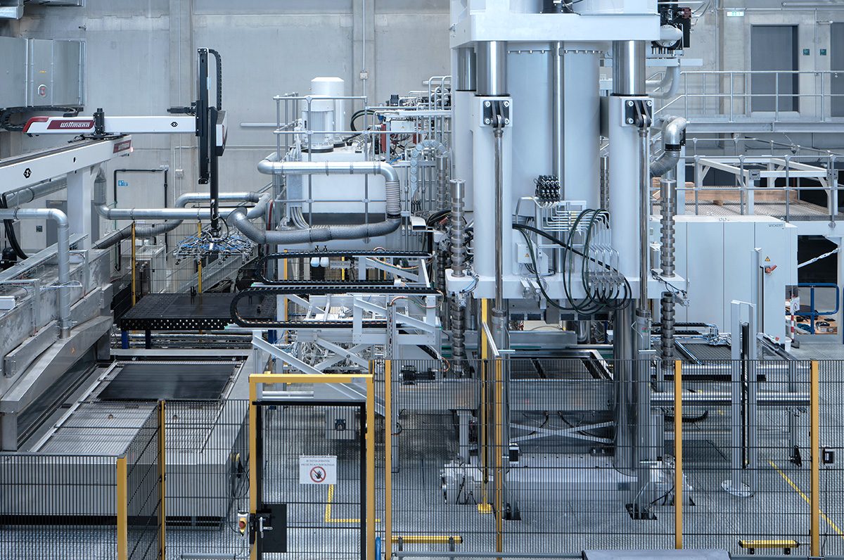 Zwei separate Presswerkzeuge stellten die Gesamtstruktur des Batteriegehäuses her, bestehend aus Gehäusewanne und -deckel. Zwei hintereinander geschaltete Module aus Gehäusewanne und -deckel ergeben in Summe einen Prototyp mit der Aufnahmekapazität von Batteriezellen mit 82 kWh (brutto).