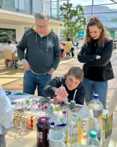 Damit geht „Experimentieren mit JuMaMi“ bereits in die dritte Runde. Die Clusterpartner – das Bildungsbüro Stade, der Composites United e.V. und die hochschule 21 – haben auch in diesem Jahr unterschiedliche Experimente-Anleitungen erstellt und die MINTigen Fakten dahinter in einem Glossar zusammengestellt. Beim Workshop im Mai 2023 testeten die Jugendpflegerinnen und Jugendpfleger alle MINT-Experimente wie beispielsweise die magische Flüssigkeit fleißig aus und bekamen Einblicke, wie sie mit Kindern und Jugendlichen eine Algenfarm bauen können. Mit dem selbsthergestellten Kleber aus Milch bastelten sie eigene Raketen, die mit Luftpumpen-Antrieb in einem kleinen Wettkampf zum Schluss der Veranstaltung hoch hinausflogen.