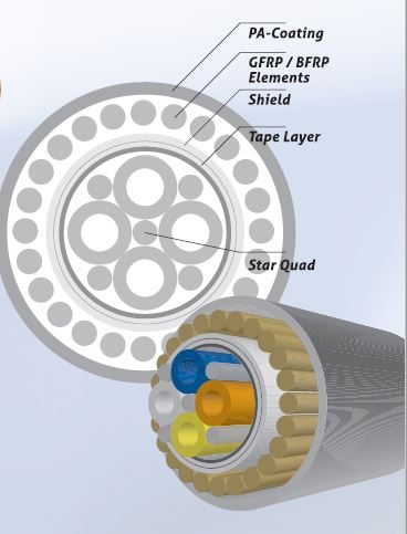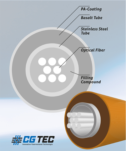 Ein weiteres Highlight: das Multilayer-Basalt-Tube – ein innovatives Faserverbundkabel mit integrierten Lichtwellenleitern in Edelstahlröhrchen, ummantelt mit Hochleistungs-Basaltfasern.