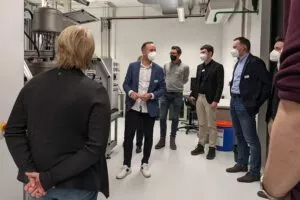 Prof. Dietmar Koch und Dr. Samet Kurt vom MRM führten die Gäste vor Ort im Anschluss noch durch das 2020 fertiggestellte Gebäude des MRM der Universität Augsburg und die Labore des Lehrstuhls Materials Engineering.