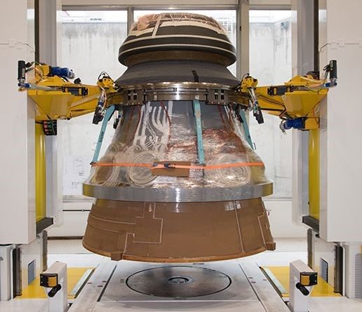 Bild: Feststofftriebwerk P120C der ArianeGroup mit Komponenten von Hightex (© ArianeGroup)